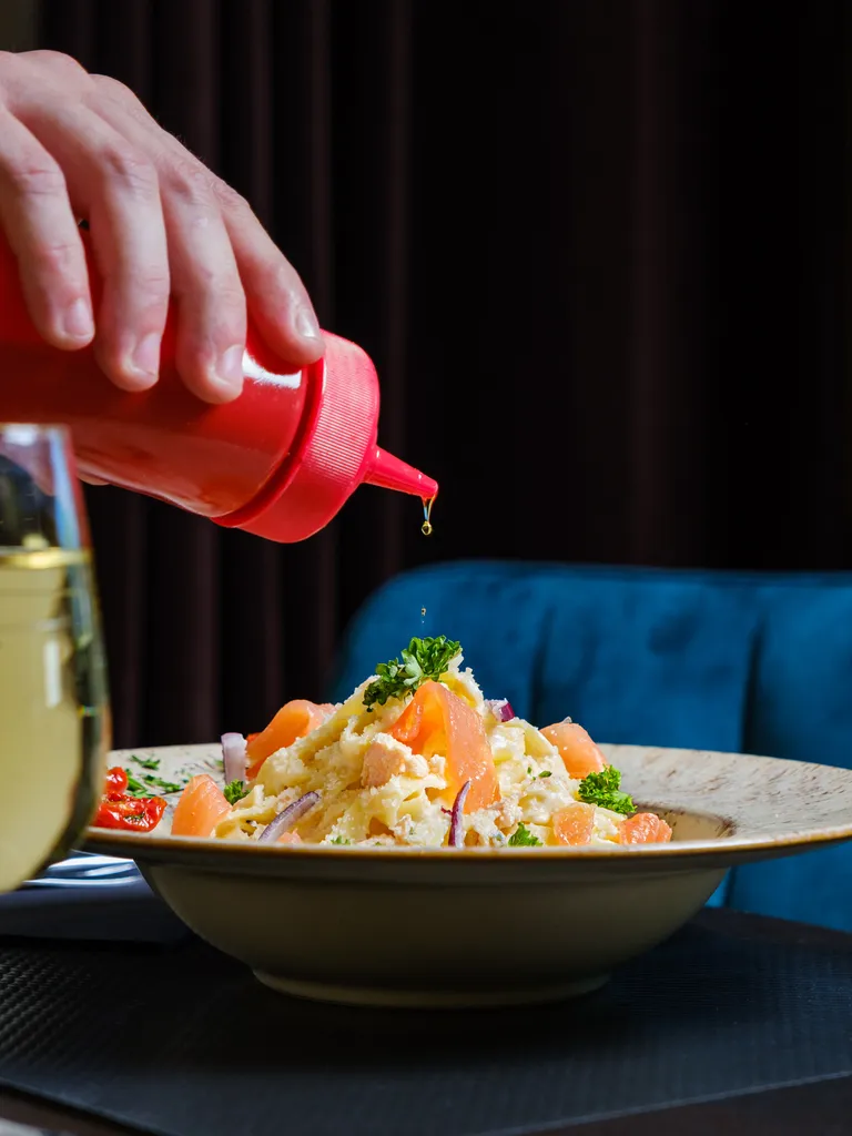 Pâtes fraîches à la crème légère, duo de saumon & parmigiano.